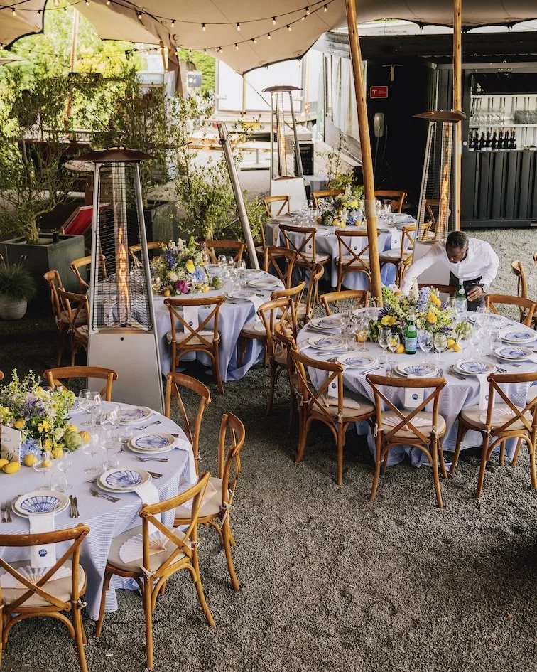 A wedding lunch for 200 guests, inspired by the couple’s favorite restaurant, La Guérite. Champagne, perfectly styled tables, a cocktail bar, and entertainment that truly wowed, turning every detail into a moment to remember. We flew in our favorite band from Coco Paris, and before the lunch even started, the napkins were already in the air, setting the tone for an afternoon filled with celebration.